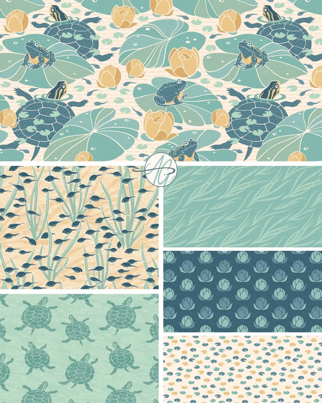 I'm Angela Grace, a surface designer and illustrator who loves travelling and spending summers in cottage country, Ontario. I'm inspired by the beauty of our natural world and take great care to share it through my work. Whether that's a lone loon calling to her mate beneath a starlit sky or a puddle of newly hatched tadpoles glistening in the morning sun, these beautiful visual gifts provide endless inspiration for my creative soul. Please take some time to explore my portfolio.